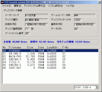 ◆ディスクシステム標準ファイルであるFDSファイルを開き、各種パラメータを表示・編集します。