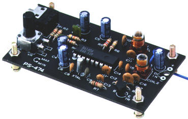 発振部に、クリスタル(水晶)を使用したトランスミッタです。LC発振に比べ、送信周波数が安定しています。 |