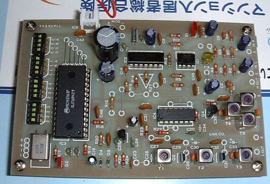 TX1415型と同じ基板を使用していますがこちらのモデルはパラレル制御のLSIを採用していますので直接DIPスイッチで周波数を設定します。